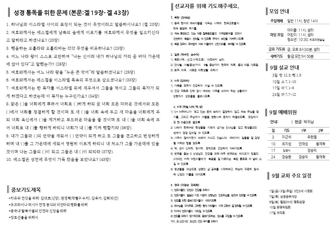 | 23년 9월 3일 주일예배 일반부 주보 (0) | 2023.09.06 |