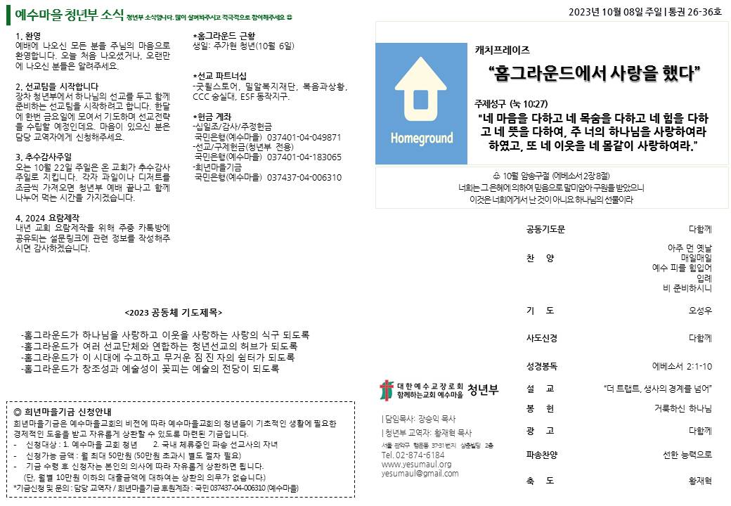 | 23년 10월 15일 주일예배 청년부 주보 (0) | 2023.10.18 |